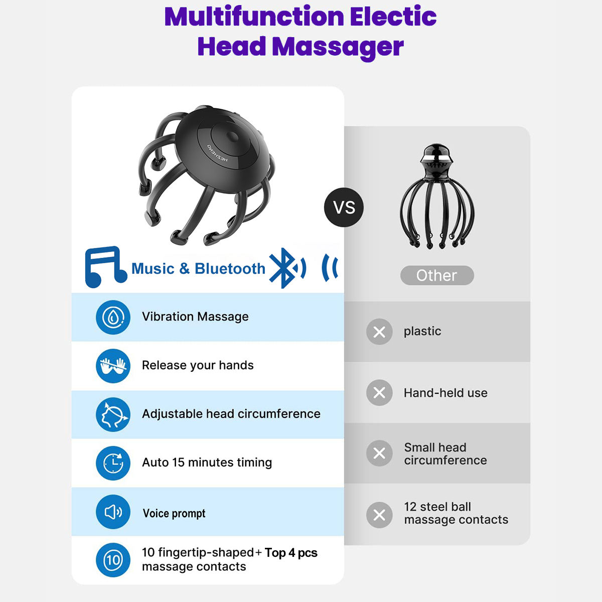 Masseur Électrique Crânien Antistress ✨ + Enceinte Bluetooth Intégrée 🧠🎵